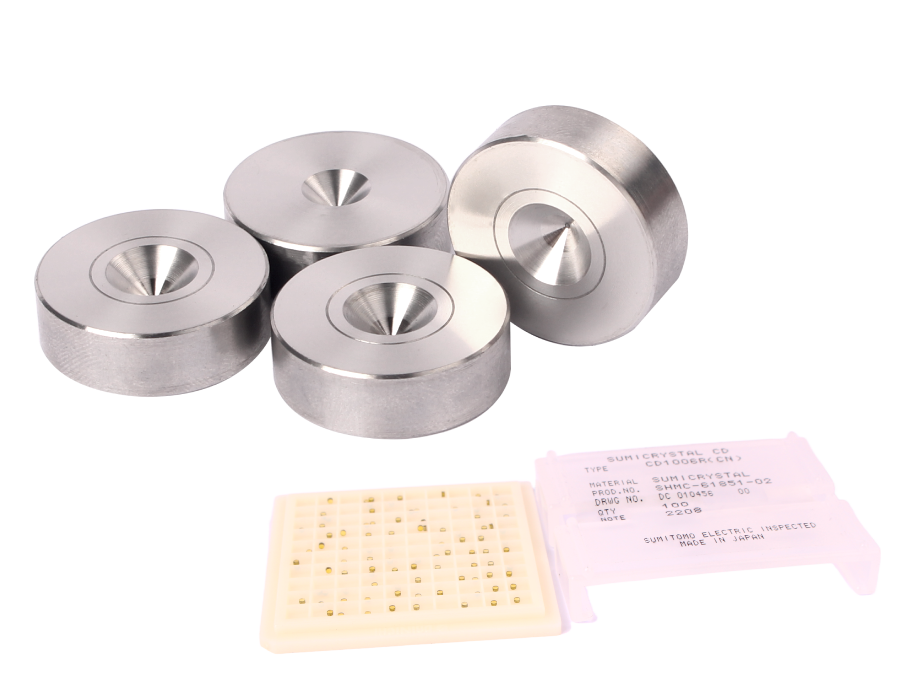 单晶是人造合成的钻石,单晶具有极高的硬度和抗磨损度,散热性能极好,可用于高温加工工艺,所有模芯都是111面取向,在受控的条件下制造,无杂质,无裂纹。物理特性与天然钻石极其相近具有优越的质量和耐磨特性。适用于镀锡线材、特殊合金线、贵金属线、铜、铝等金属拉丝。
